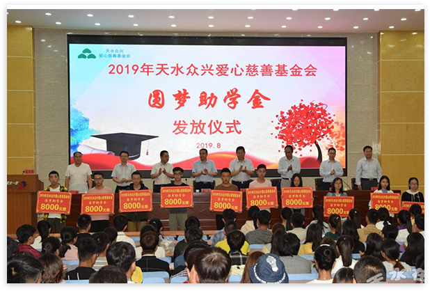 ● 以“天水眾興愛心慈善基金會(huì)”為載體,以“弘揚(yáng)正氣、奉獻(xiàn)愛心,扶貧濟(jì)困、救孤助學(xué)”為宗旨,用愛心守護(hù)未來(lái)。